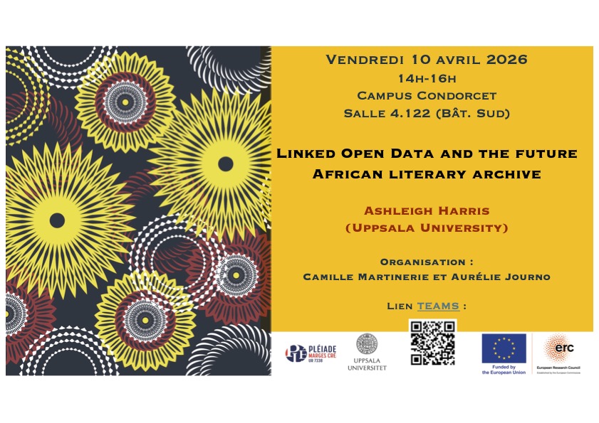 Linked Open Data and the Future of the African Literary Archive, Campus Condorcet, Paris and Online, 10 April 14:00-16:00 CET.